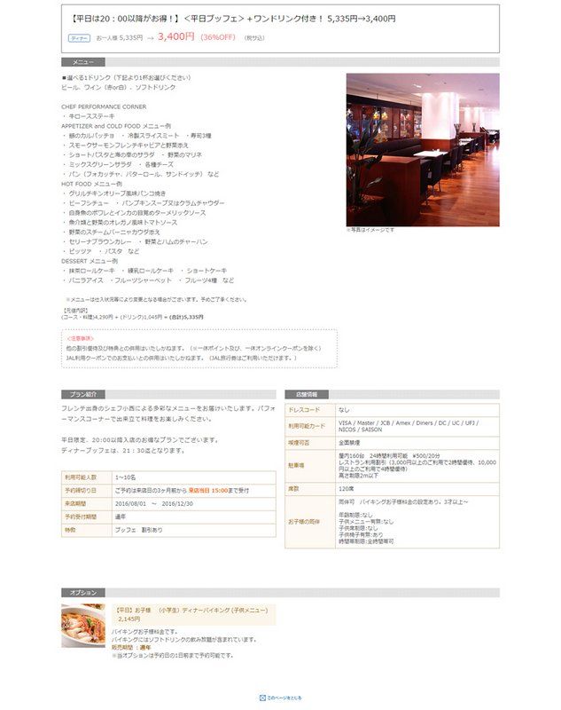 一休レストランで予約して、ワンドリンク付きのディナーブッフェに来てみた。