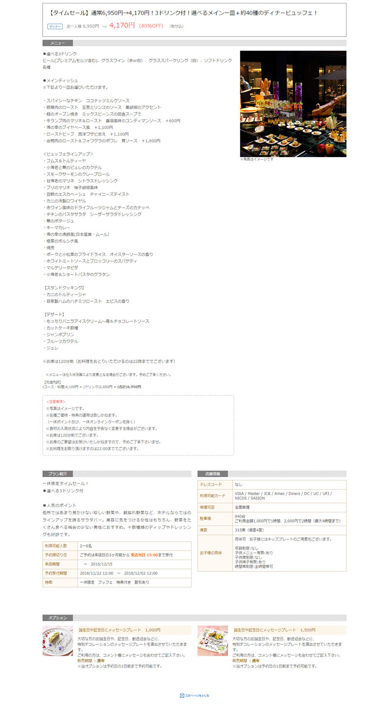 今日の夜はリーガロイヤルホテル大阪に入ってる「オールデイダイニング リモネ」でディナーブッフェを一休レストランで予約してた。タイムセールで3ドリンクと選べるメインが付くバイキングが4,170円!! 3ドリンクはもちろんアルコールもOK。何でシティホテルでこんなにも安いのか理解出来ん(笑)。