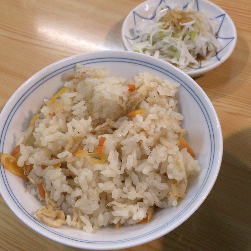 ダシが効いてるカレーうどん。とろみも充分。うどんは太いのか細いのかを選べる。今日は太め。定食にはかやくごはんと漬物が付いてくる。ちょっと高めの価格設定やけど、一度は食べてみる価値があると思う。