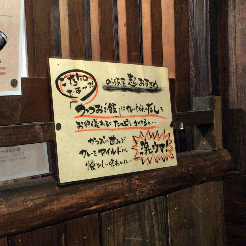 楽門整体院でのマッサージの帰り、行きしな気になったお店に入ってみた。「カレーうどん食堂 のら豚屋」!! カレーうどん専門店ってこの寒い日に実にナイス。かつおご飯とサラダが付いた「のら豚カレーAセット」1,001円!!