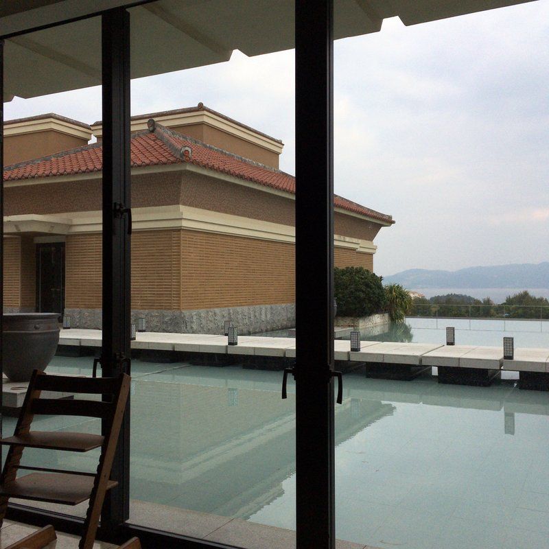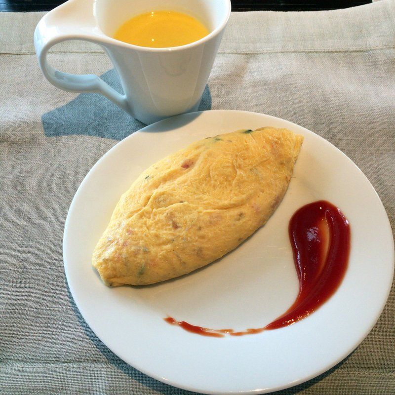 グラスは琉球ガラス。ジュースはフレッシュ。海が見える窓際のテーブル。沖縄そばもある。目の前で焼いてくれるオムレツ。焼きたてのパン。その他いろいろ・・・。やっぱりリッツ・カールトンの朝食は凄いと思った。