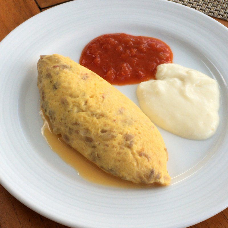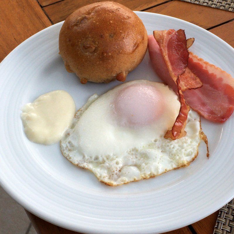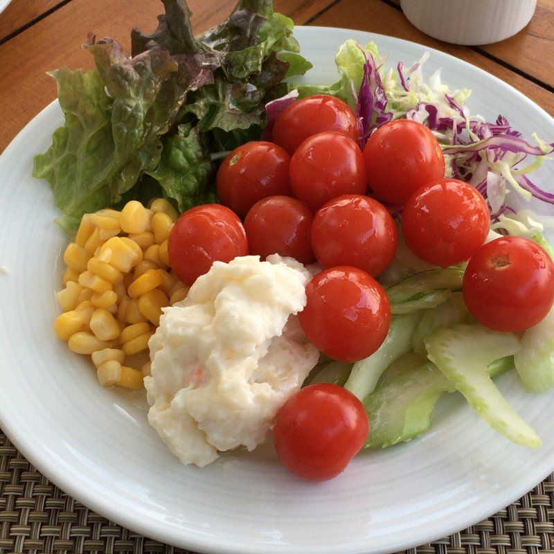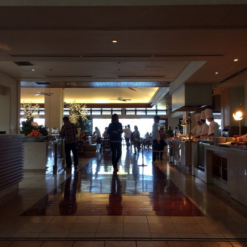 早朝に行くと景色の変化も楽しめる。海側1列目の真ん中のテーブルに案内された。卵料理は目の前で作ってくれるスタイル。オムレツと目玉焼き、両方とも頼んでみた。プチトマトが何故か凄く甘い。つい食べ過ぎた。2月でも人が多い沖縄のリゾートホテル。