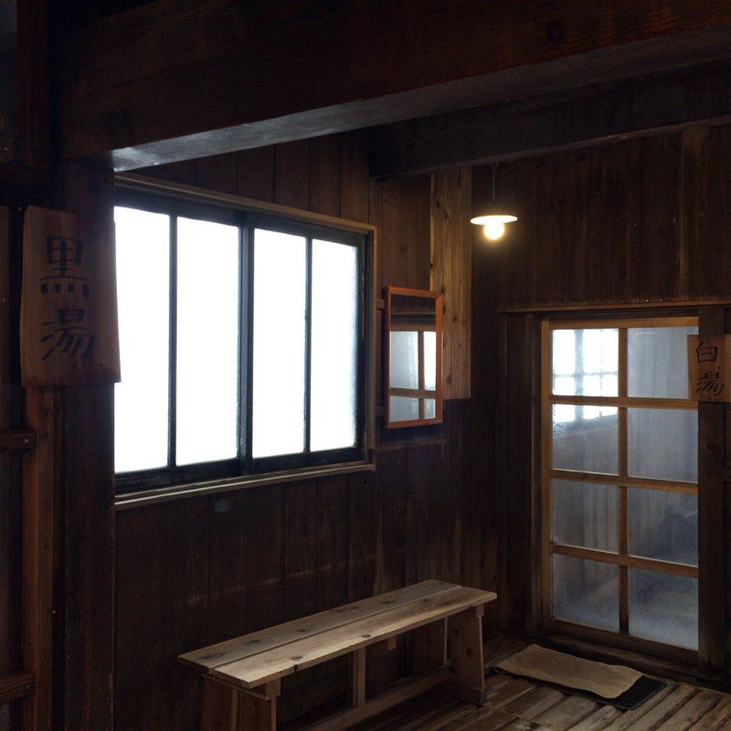 同じ建物にあって、右が白湯で左が黒湯。脱衣場は同じ。中は誰もいない。いやあ、こんなに誰もおらへんのって信じられへん。みんなゆっくり朝ごはんを食べてるんやろうか・・・??