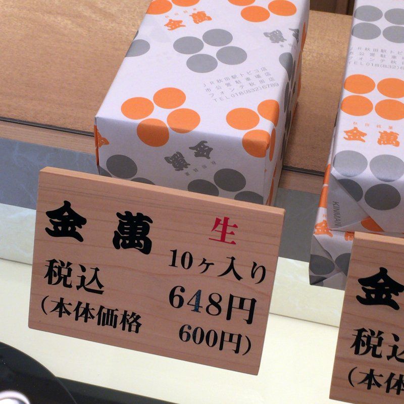 買ったのはこの金萬 生 10ヶ入り648円。ミニ回転焼みたいなカンジ。カステラ生地に中に白あんが入ってた。ちょっとレンジでチンしたらフワフワになるみたい。このお店って結構な老舗で、この金萬っていう商品が秋田名物になってた。