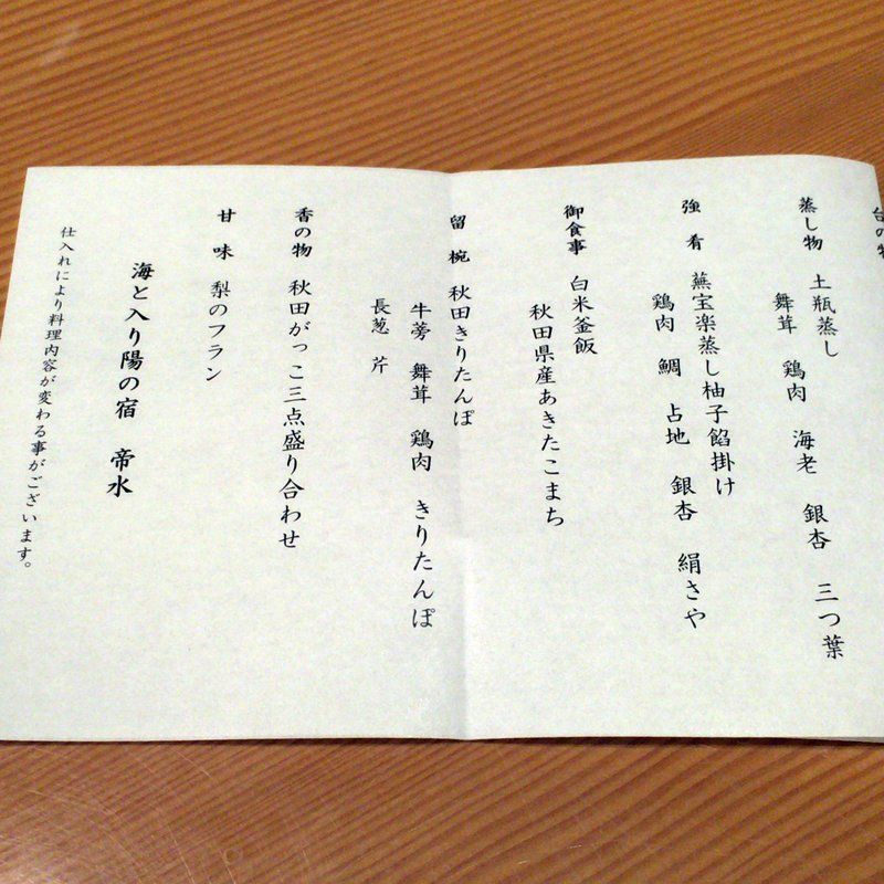 温泉に入ってサッパリした後は食事。今日はちょっと遅めのスタートにした。19時に予約。1階の和食処おおしまに向かった。