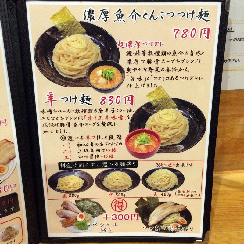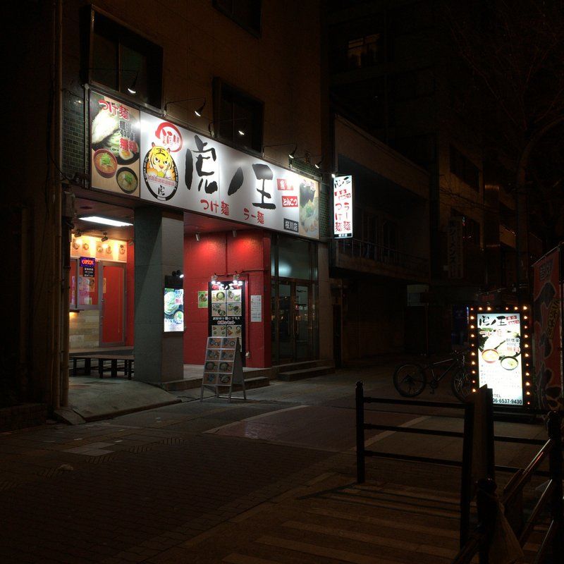 ハラへったなあ。23時の割増前にメシ喰っておく事にした。腹が減っては戦はできぬ。今日はたまたま通りかかった桜川の千日前通り沿いにある麺処 虎ノ王。濃厚魚介とんこつつけ麺400g あつもり780円を注文。つけ麺久しぶり~!!