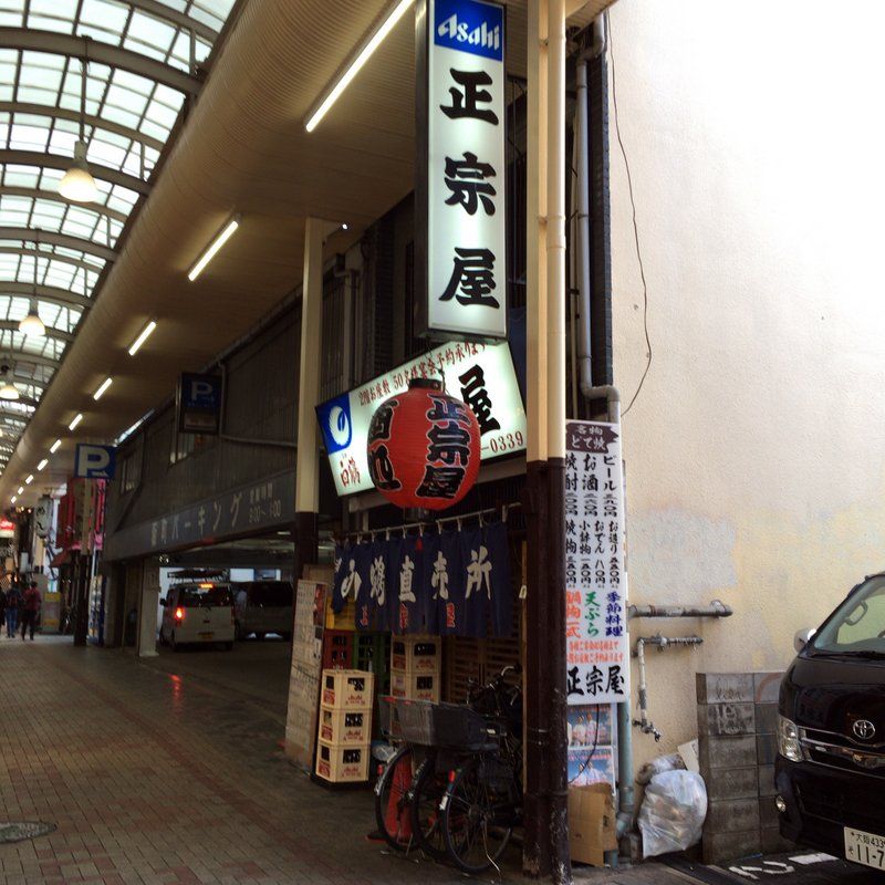 今日紹介する大阪の老舗は、大阪ミナミ裏難波の近く、千日前通りと相合橋筋の交差点にある正宗屋 相合橋。かなり前からある。30年以上は軽くやってる大衆居酒屋。