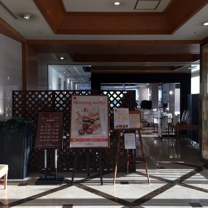 朝食はホテルJALシティ松山に入ってるラ・テラッツァで食べ放題モーニングブッフェ。今回は宿泊代にここの朝食が付いてたけど、普通は1人1,500円みたい。ここのシェフが開発した朝専用カレーっていうのが印象に残った。