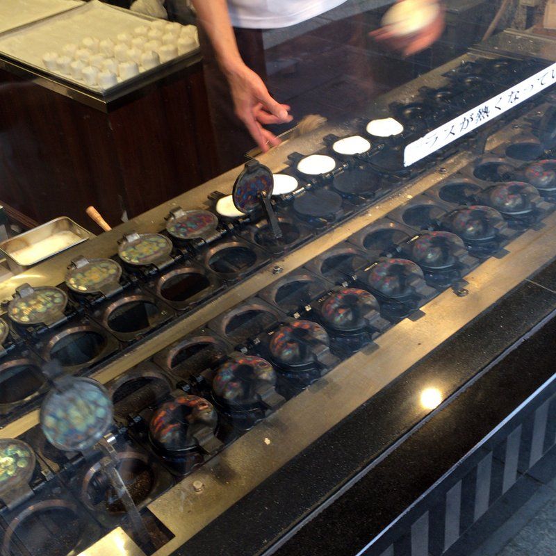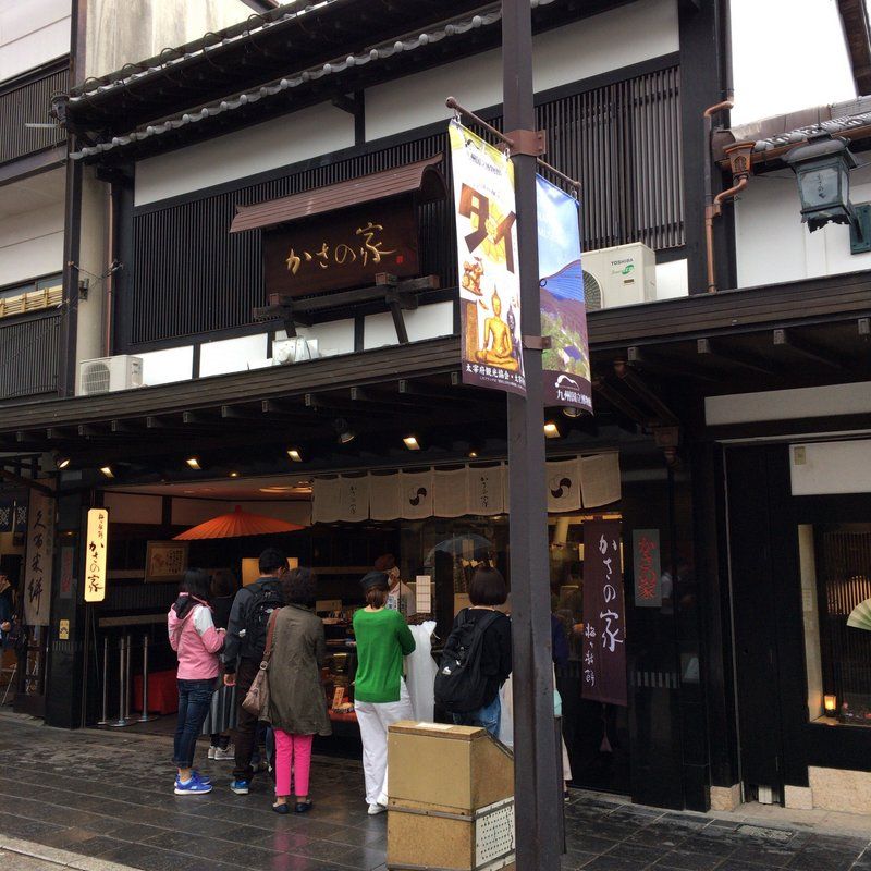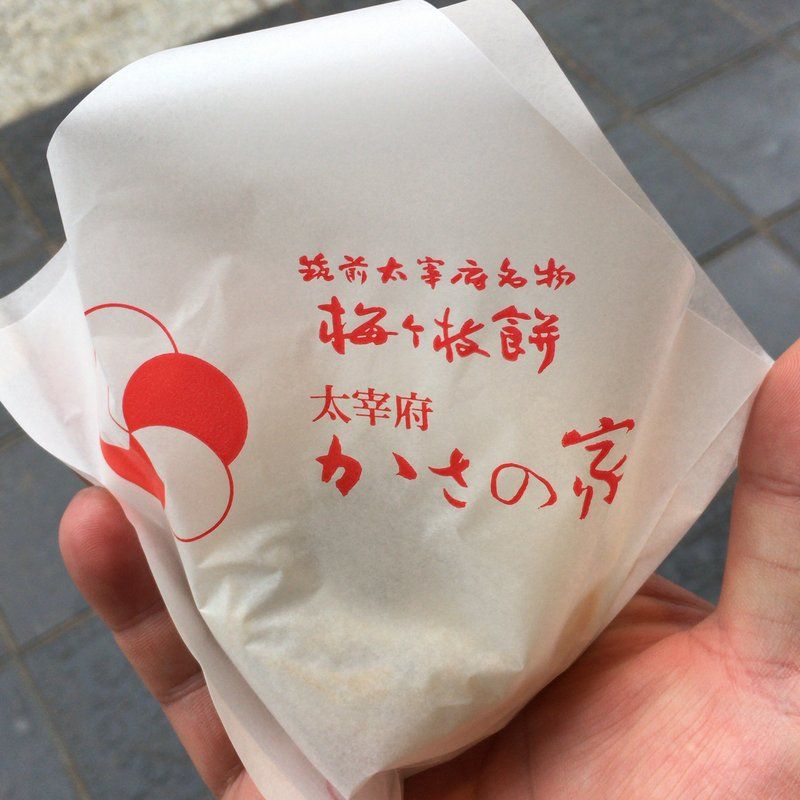 福岡太宰府天満宮参道。凄い人だかり。修学旅行生が多かった。さっき天神でサバランチを食べたんで、ちょっと甘いデザートが欲しかった。太宰府名物の梅ヶ枝餅。かさの家っていうお店で買ってみた。