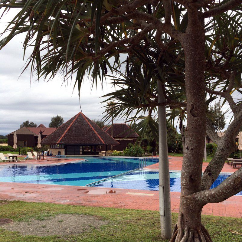 屋外プールの横にあった。タオルは置いてあるんで、手ぶらで行っても大丈夫。ルームキーはフロントに預けた。行ってみると確かに海が見える。海が見えるジャグジーバス。いい感じ♪ 旅の疲れも吹き飛ぶ快適さ。宿泊者は無料で利用出来る。