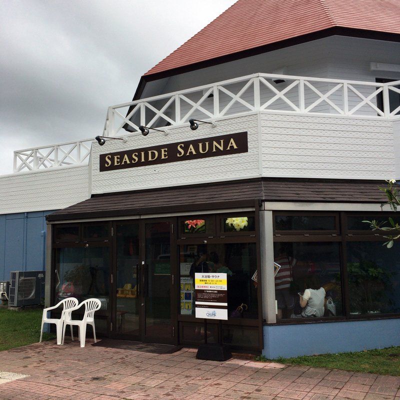 オクマプライベートビーチ&リゾートに着いて、部屋でちょっとノンビリして、夕食行く前にちょっと海が見える展望浴場に行ってみた。シーサイドサウナっていうトコにあるみたい。