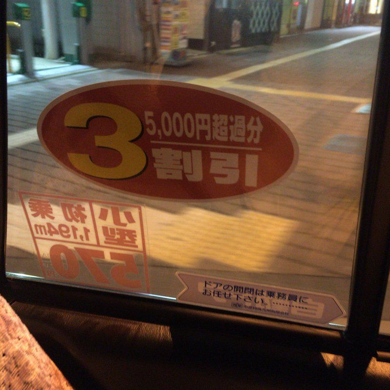 こっちは小型で初乗り1,194メートルで570円。加算距離は書いてへんかった。5,000円超え分は3割引き。こういうサービスを福岡でもやってるんやね。