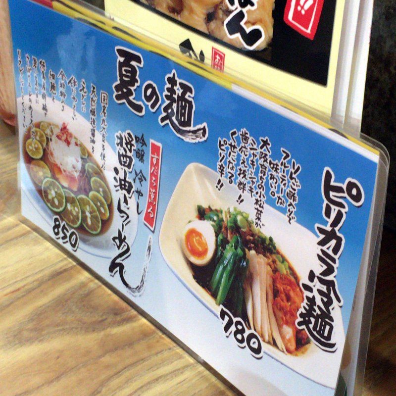 今日紹介する大阪の老舗は、東梅田の堂山町交差点近くにあるラーメン店まんねん梅田本店。今日はここの夏季限定メニュー 夏の麺 吟醸冷やし醤油らーめん850円と椰子(ココナッツ)プリン300円を注文してみた。