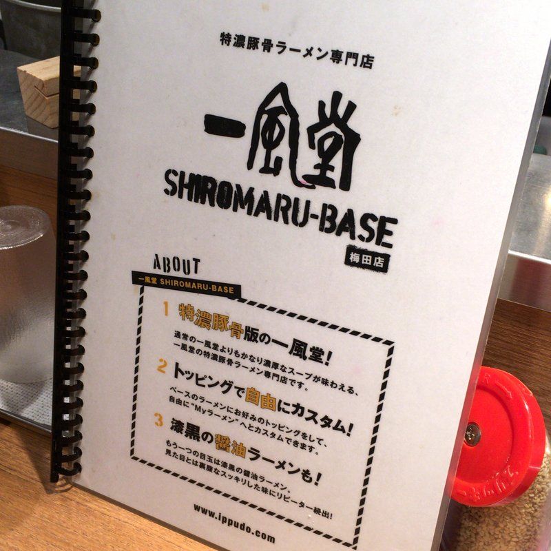 今日紹介する大阪の??老舗は、東梅田堂山町交差点近くにあるシロマルベース梅田店。打倒、一風堂。って書いてある看板に惹かれて入ってみた。一風堂の上にある。