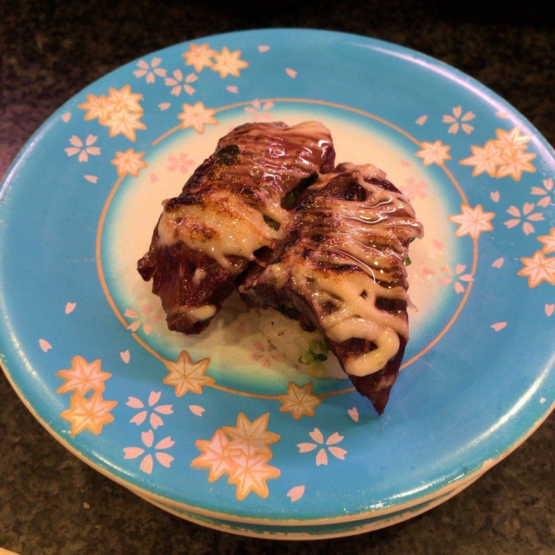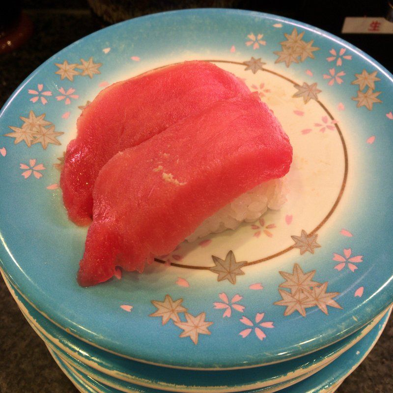 今日の夜は阪急東通商店街にある回転寿司のさかえに行ってみた。一皿135円。お造り盛合せもある珍しい回転すし。