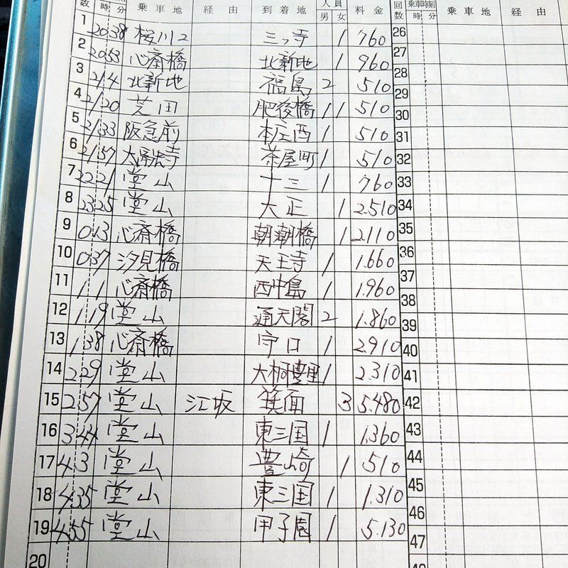 今日の日報はこんなカンジ。今日は新御堂は少なめやった。日報、毎日載せておくのいいかもしれん。自分で見ても参考になる。ウチの会社は堂山が中心。ここに行ったら絶対お客さん乗せれるっていう安心感がデカイ。