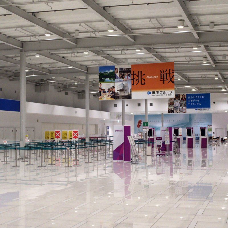 ピーチカウンターの受付は5時35分からやった。1時間ヒマやね。まあとりあえずトイレ行って、タバコ吸って、スマホ見て・・・、最高やね(笑)。関西空港はやっぱり綺麗やわ。