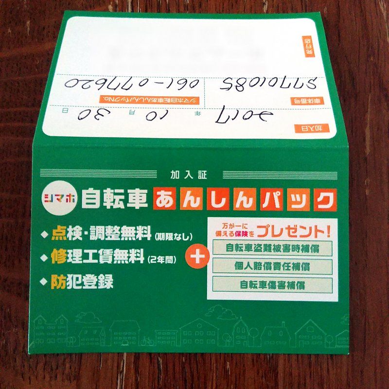 自転車本体が20,000円ぐらいで、あんしんパックが3,000円ぐらい。安いんか高いんかようワカランけど、まあたぶん安いんとちゃうかなあ。盗られても補償が今はあるんやね。知らんかった。