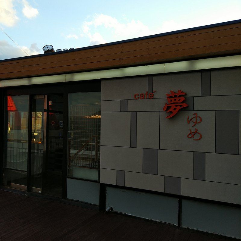 3階のデッキに出てみると凄い風。さ、さむい・・・!!! 風が思いっきり強かった。横に見えたカフェ夢に行ってみた。カフェがあるんやね。お酒も飲める。