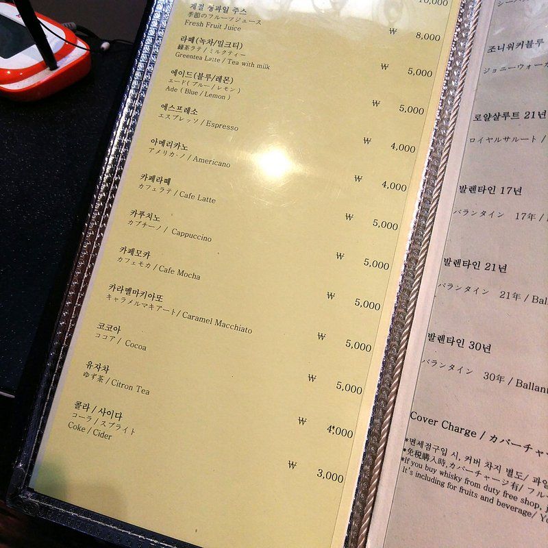 メニューはウォンで書いてある。ま、思いっきり大体やけど、100円が1,000ウォン。ゼロを一つ取れば大体日本円になる。注文したカプチーノ5,000ウォンは500円ぐらい。クレジットカードも大丈夫。日本円でも払える。