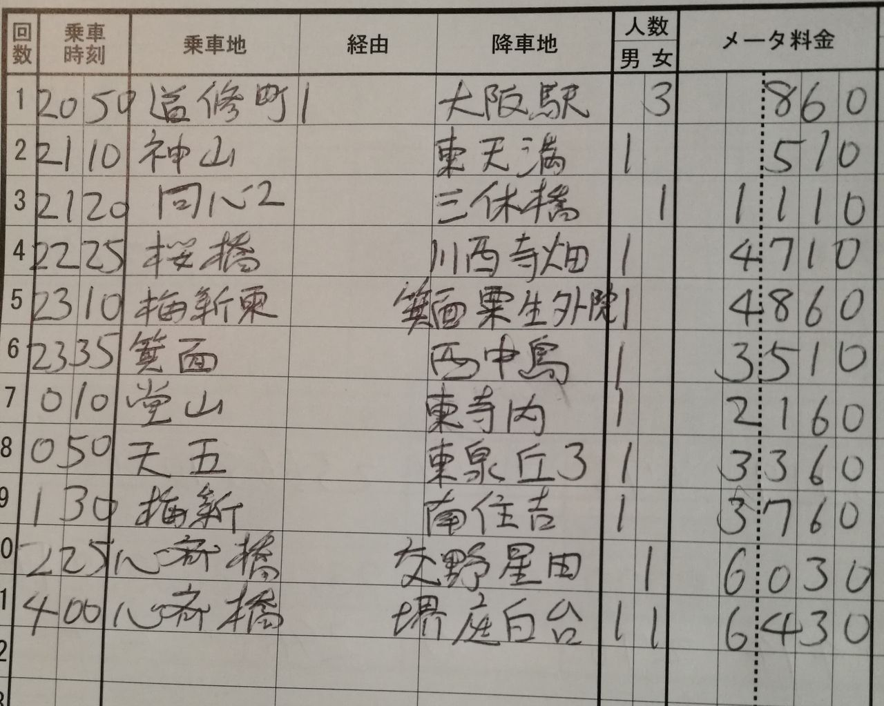 同じ初乗り510円でも全く違う。これが夜勤510円の恐るべき効力。せやけど昼勤の510円を忘れたらあかん。この昼勤でナンギした経験があると、夜のワンメーターのお客さんでも大事にできる。それが接客力の差につながる。接客が良かったら常連さんも増える。それに無線予約が増えると鬼に金棒♪