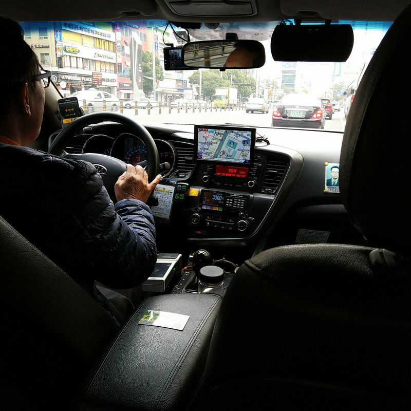 ロッテホテル釜山から釜山実弾射撃場までタクシーに乗ってみた。ロッテホテルから乗ると、ホテルのドアマンに日本語で行き先を伝えると、タクシー運転手さんに行き先を伝えてくれる。