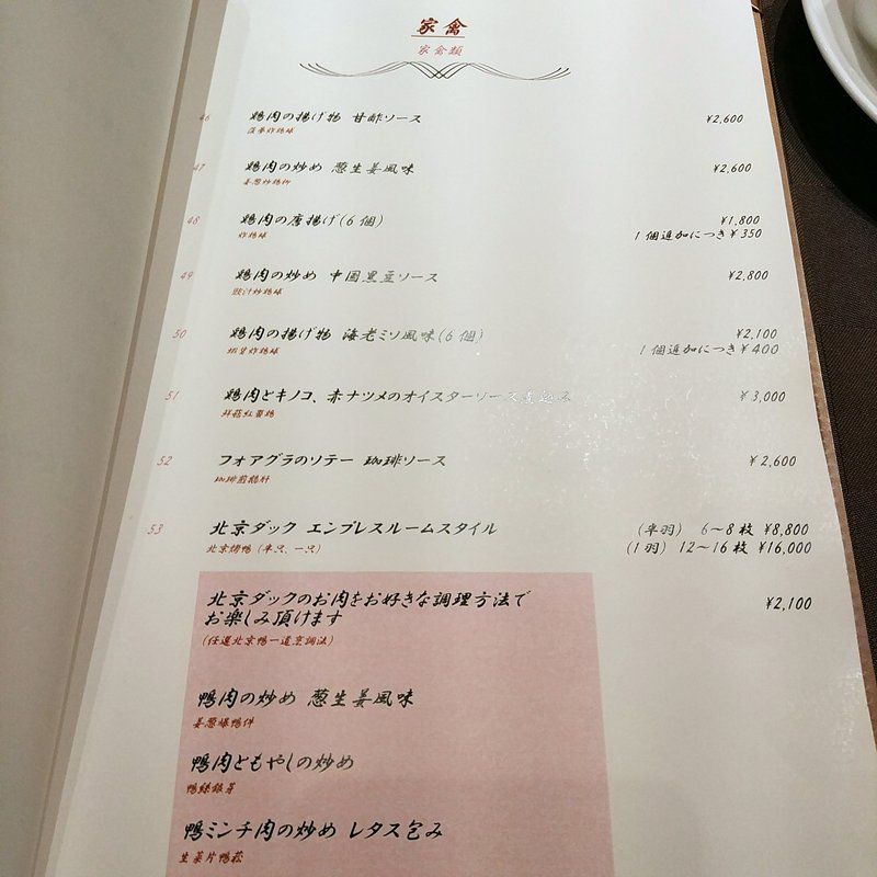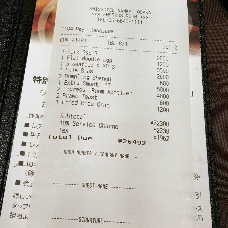 今日は休日。せっかくなんでちょっといいお店に行ってみた。スイスホテル南海大阪に入ってる中華料理エンプレスルーム。今日はホテルの中華でディナー♪