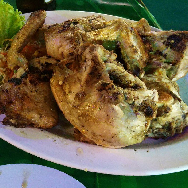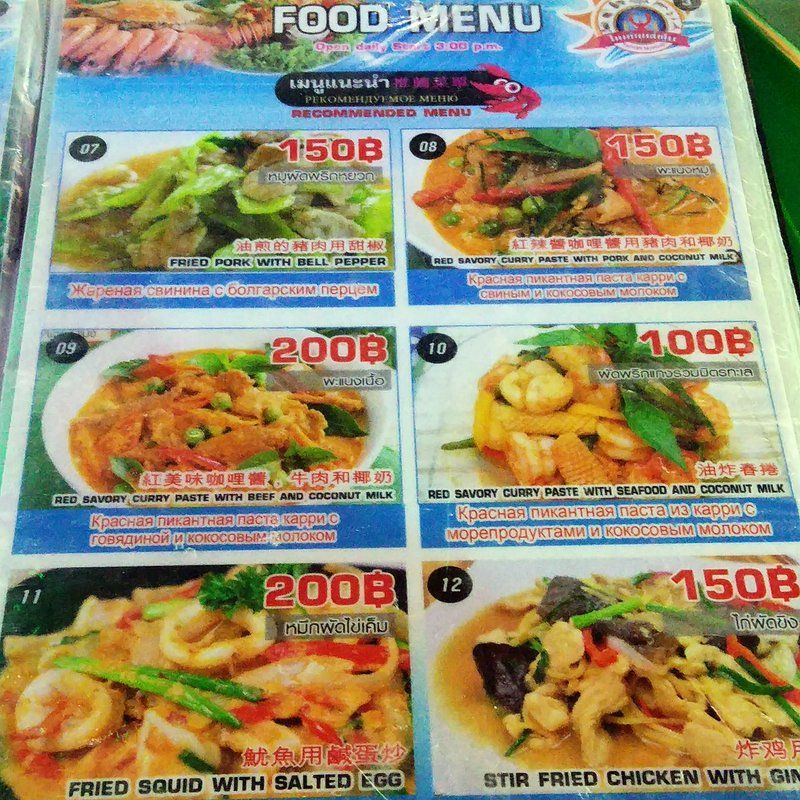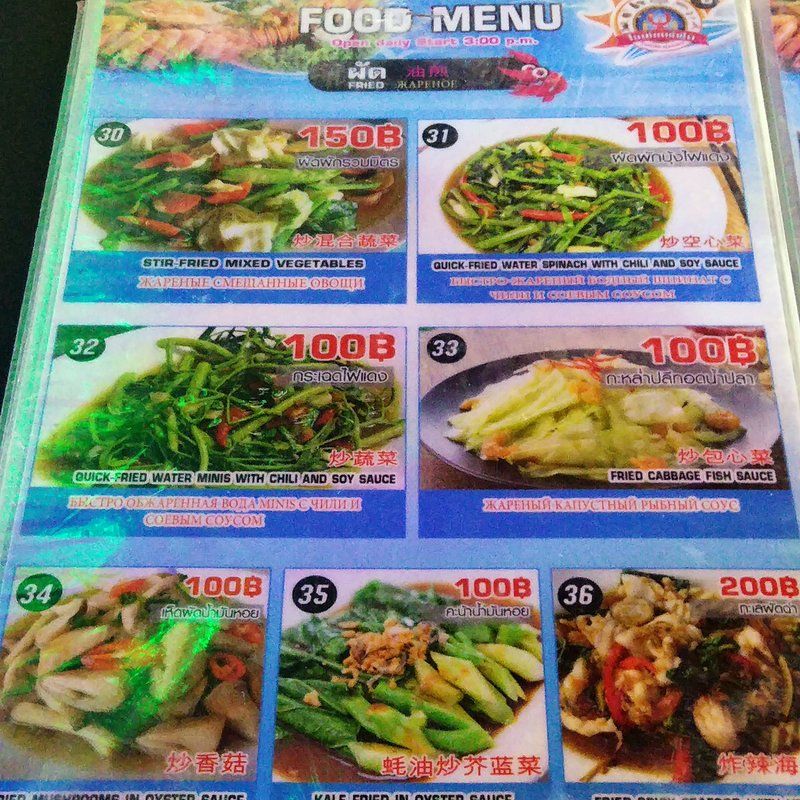 ハラへった・・・。谷やんの案内で食べ歩きに出かけた。ビーチサイドのシーフードレストランに突撃。鶏肉食べたいって言うたら、何故かここになった。ガイヤーンっていうのがうまいみたい。