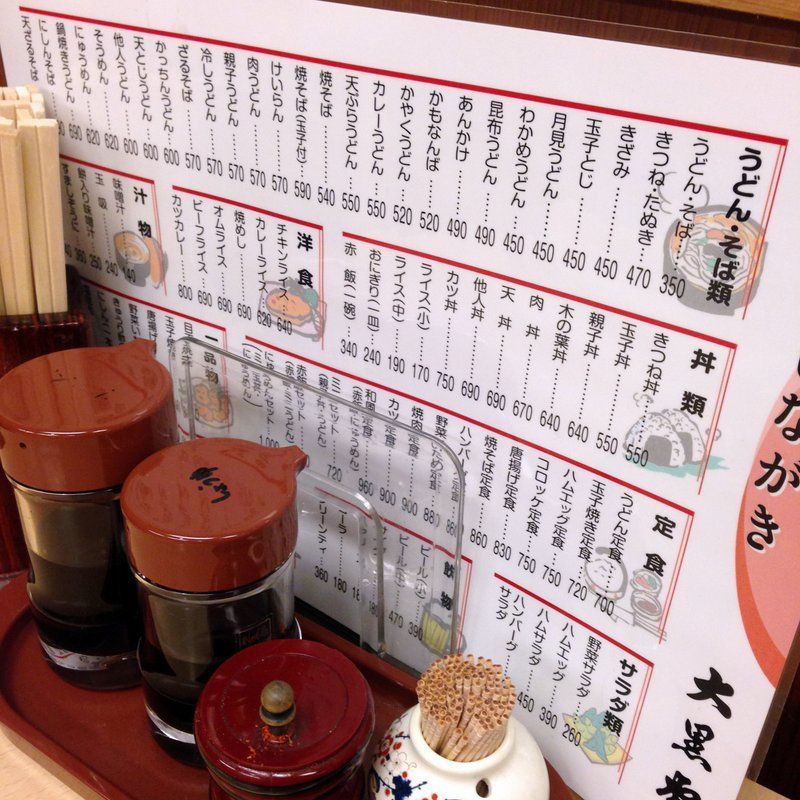 店内に歴史が飾ってあった。注文したのは「カレーうどん」550円と「ライス(中)」190円やね。ライスの