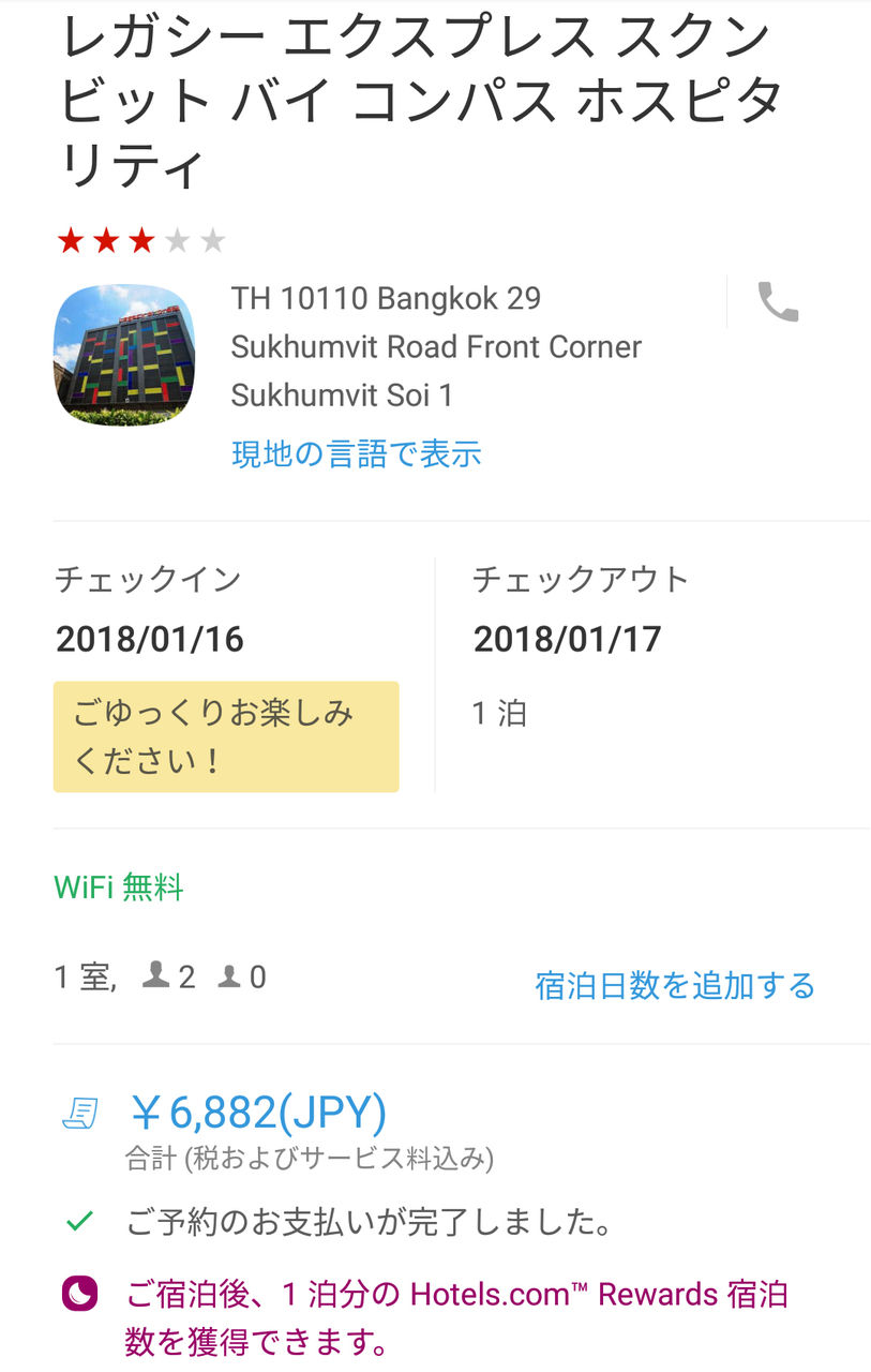 バンコクでの宿泊は、レガシー エクスプレス スクンビット バイ コンパス ホスピタリティ(Legacy Express Sukhumvit by Compass Hospitality)。谷やんがここが便利っていう事でここに決めた。やっぱり詳しい人がいると、旅が何倍も楽しくなるし、時間の節約にもつながる。