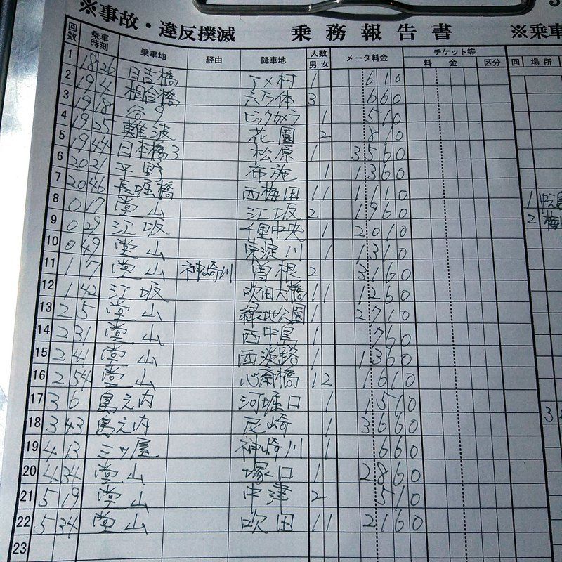 いやあ、良く乗ってもらったなあ。土曜日なんでお客さん多かった。明日は日曜日。今日よりも1時間ぐらい早く出た方がいいのは分かってるねんけど、なかなか出られへんというのがタクシー業(笑)。ラクを覚えるとあかんなあ。