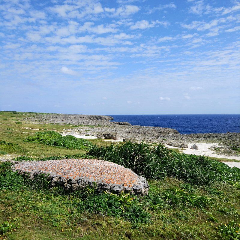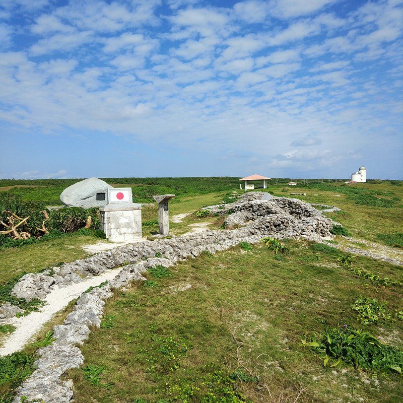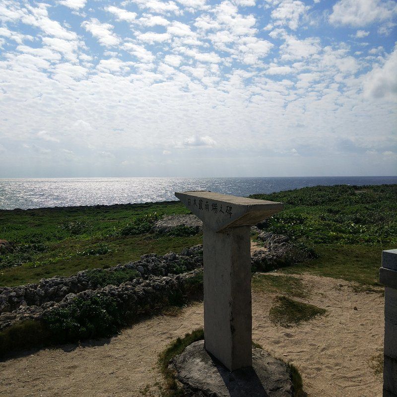 地図も貸してくれるけど、グーグルマップがあれば、全く問題無い。行きたい場所にちゃんと連れてってくれる。素晴らしいナビシステム。山羊がたくさんいてる横を通り過ぎて、日本最南端平和の碑に到着~♪ ここからの景色が絶景。南向き。