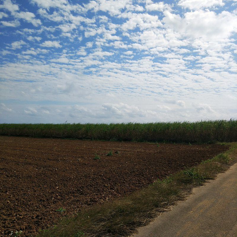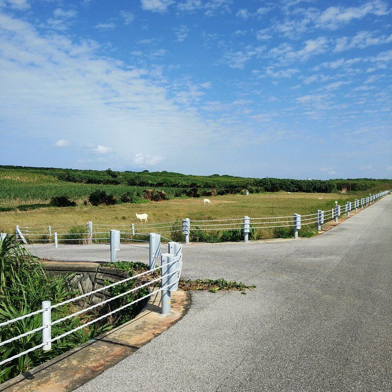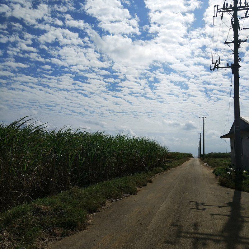 走り出していきなり普通に山羊がいてビックリした。メェメェ泣いてる。山羊ってメェメェ言うんやね。初めてナマの声を聞いた。青い空、白い雲、サトウキビ畑がずーっと広がってる。