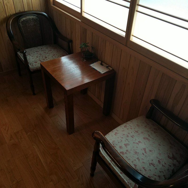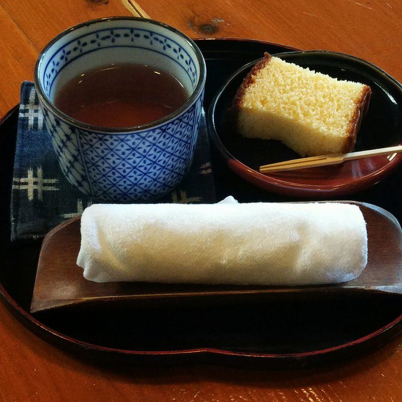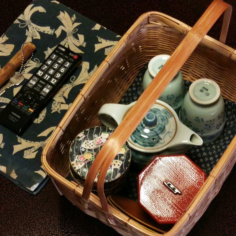 本日予約した温泉宿は日本秘湯を守る会に入ってる、長崎県雲仙市小浜温泉の旅館 國崎。大人の温泉宿っていうカンジ。静かな隠れ家的な温泉旅館。チェックインの時にお茶とお菓子を出してくれはった。部屋は2階のつゆくさ。