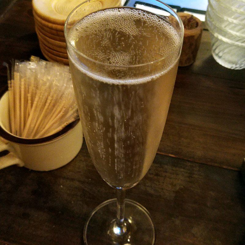 ふぐの後は鰻谷にある長堀ダイナーに寄ってみた。ちょっとワインを飲みたい気分。今日はスパークリングワインにしてみた。それとポテサラ大盛りと牛ハラミ串焼♪