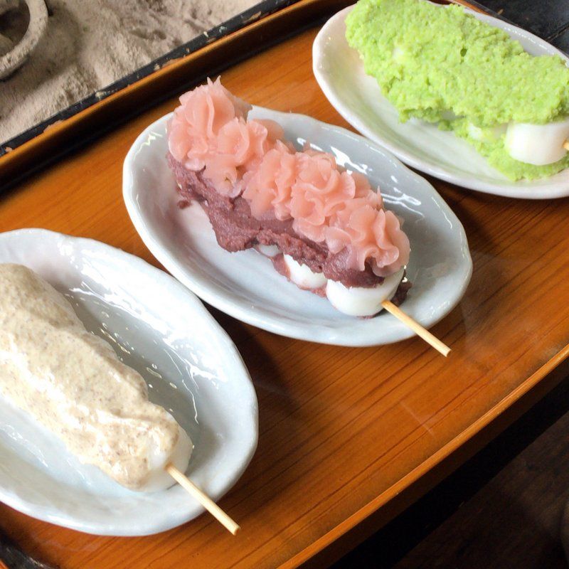 おみやげ用にテイクアウトが多いけど、店内で食べる事も出来た。お茶もセルフサービスでちゃんとある。ごま、さくら、ずんだの3種類を注文してみた。値段安いのに凄いボリューム!! 味も素晴らしい。真ん中のさくらだんごが一番気に入った。またぜひ来たい~♪