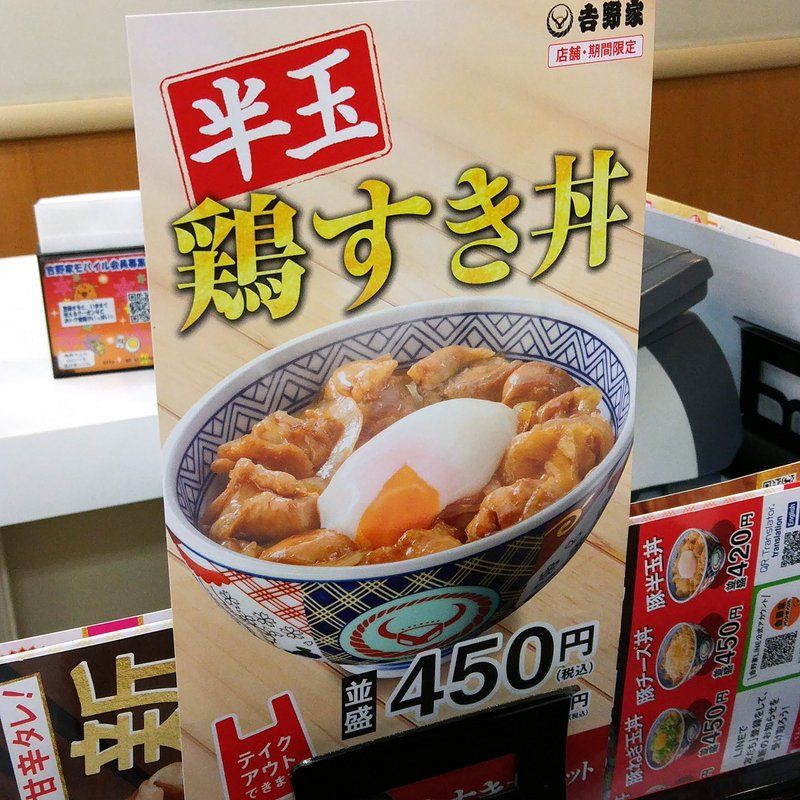 吉野家。24時間365日営業。素晴らしい。今日は新作の半玉鶏すき丼とベジ皿を注文してみた。鶏すき丼は山椒も付いてて実にいい感じ。このクオリティで450円は安い。吉野家定期券を使ったら80円引きで370円。370円やったら思いっきり安く感じるなあ♪