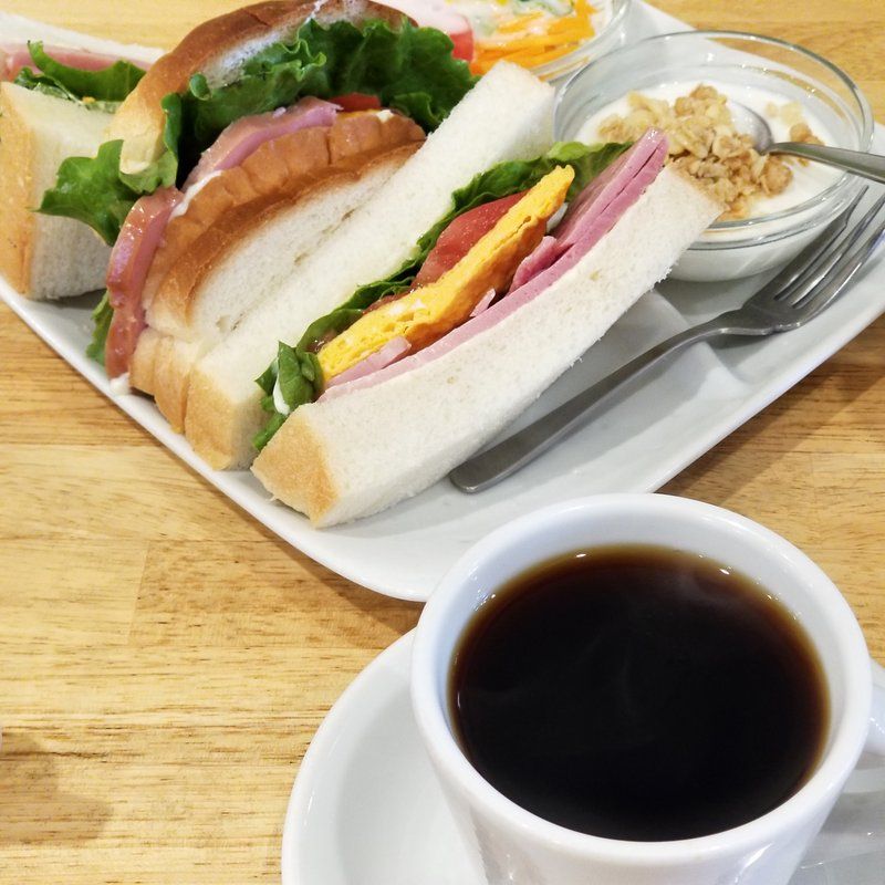 ホットコーヒー飲んで、サンドイッチ食べて、トーストも食べて・・・♪ 朝から最高やね。雰囲気もいい。FREE Wi-Fiもある。素晴らしい環境で朝ごはん。朝ごはん・・・、朝食・・・、うーん・・・、ブレックファーストっていうカンジかなあ。大阪ガスビルの近くにあるナイスなカフェ♪