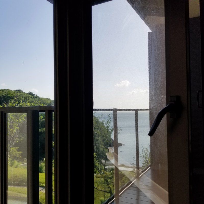 起きたら思いっきり快晴♪ いい天気やなあ。昨日の雨は一体何やってんやろう・・・??って思うぐらい、メチャメチャ天気がいい。早速、部屋のジャグジーに入ってみた。海が見えるビューバス。