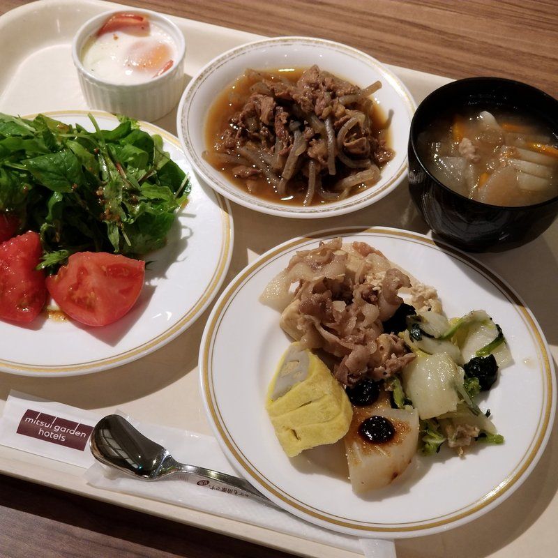 大阪に帰れるんかなあ・・・と思いつつ、とりあえずホテルの朝食に向かった。今回のプランは朝食付き。ホテルの朝食が実に気になるんで、このプランにしてみた。
