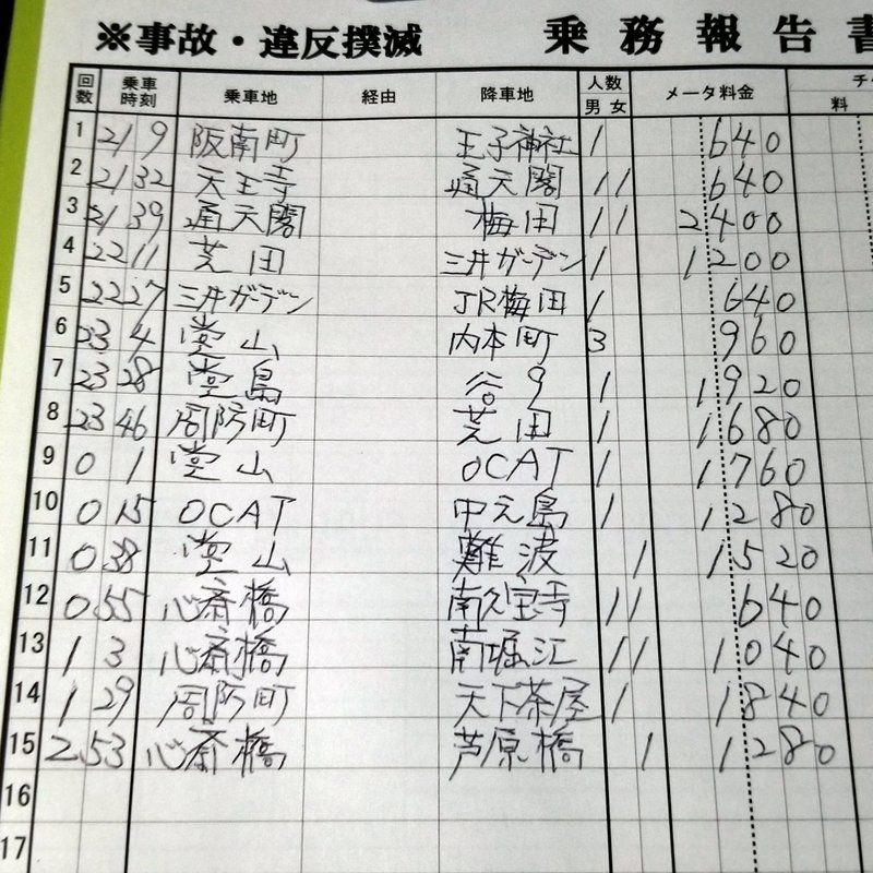 天王寺で付け待ちして、そっから割とポンポンポンと乗せる事が出来た。リズム良く乗せれてんけど、いかんせん距離が近かった。今日はずーっとそんなカンジ。3時前にピタッと止まった。あかんわ。今日はもう帰る事にした。