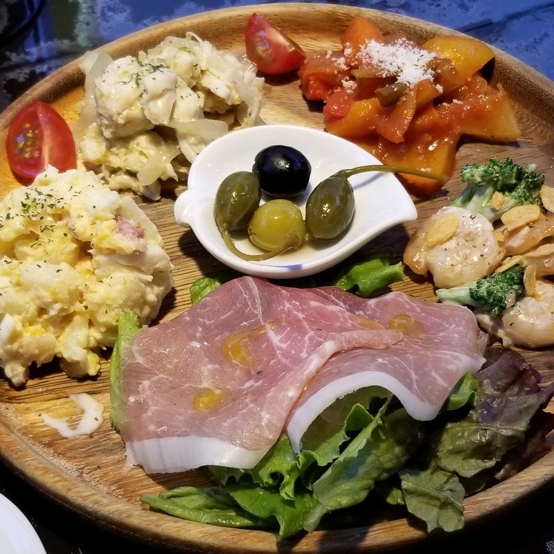 まずはカールスバーグで乾杯~!! なかなか上手に生ビールを淹れてある。こういうちょっとした事でお店の印象が変わる。前菜盛合せ、ピザを注文してんけど、なかなかに良くできてる。テラス席はいいなあ。色んな人歩いてるのが良く見える。ここはあまりクルマも通らへん。ちょっと軽く食事したり、お酒飲んだり、話をしたりするのにいいお店やね~♪
