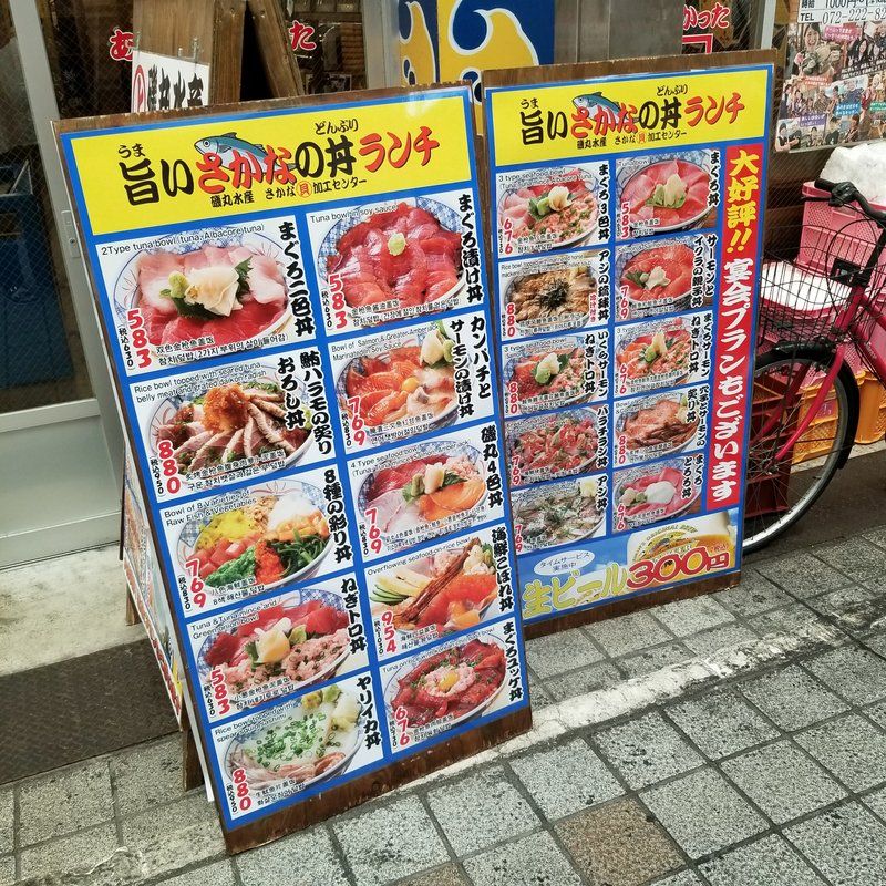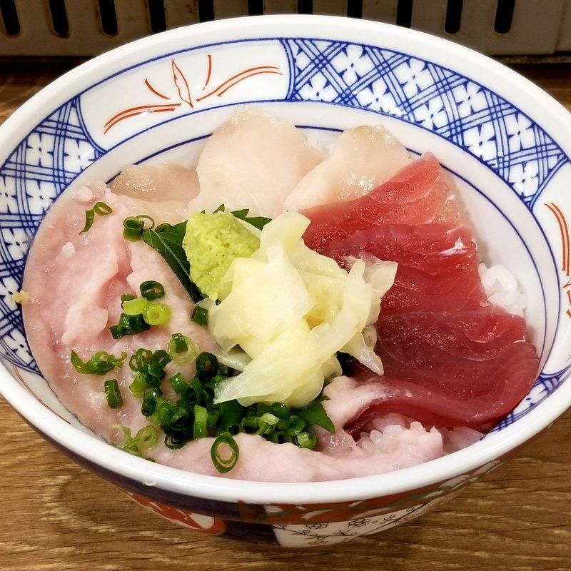 ランチ2軒目は磯丸水産 堺東駅前店。年中無休24時間営業の海鮮居酒屋さん。ランチは魚介を使った丼を中心としたメニュー。まぐろ3色丼676円を注文してみた。