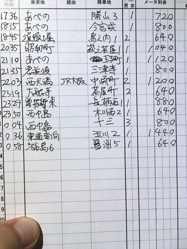 9月6日木曜日の営業日やね。確かにあの日はちょっとヒマやったよなあ。街中に空車のタクシーが溢れかえってた。松ちゃんの早く帰るっていう選択は大正解!! あかん日はとっとと帰る。これが一番やね。どうせ頑張るんやったら、調子のいい日にやればいい。全然あかん日ってだいたい月に1回か2回ぐらいかなあ。そういう日は帰ったらいい。ワンコイン南花田は時間の制約が無いんで、こういう時に助かる。