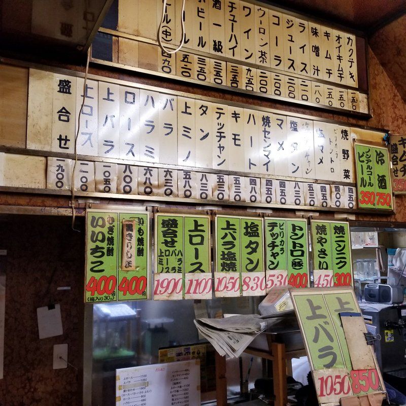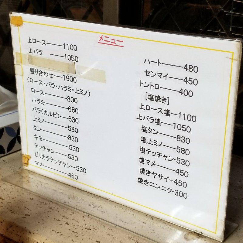 JR大正駅の前にある焼肉ミヤコ。ここが前から気になっててんなあ。カウンターとテーブル。一人焼肉も全然OK~♪ 思いっきり年季が入ってる老舗焼肉店。ようやく入店出来た。21時には閉まる。