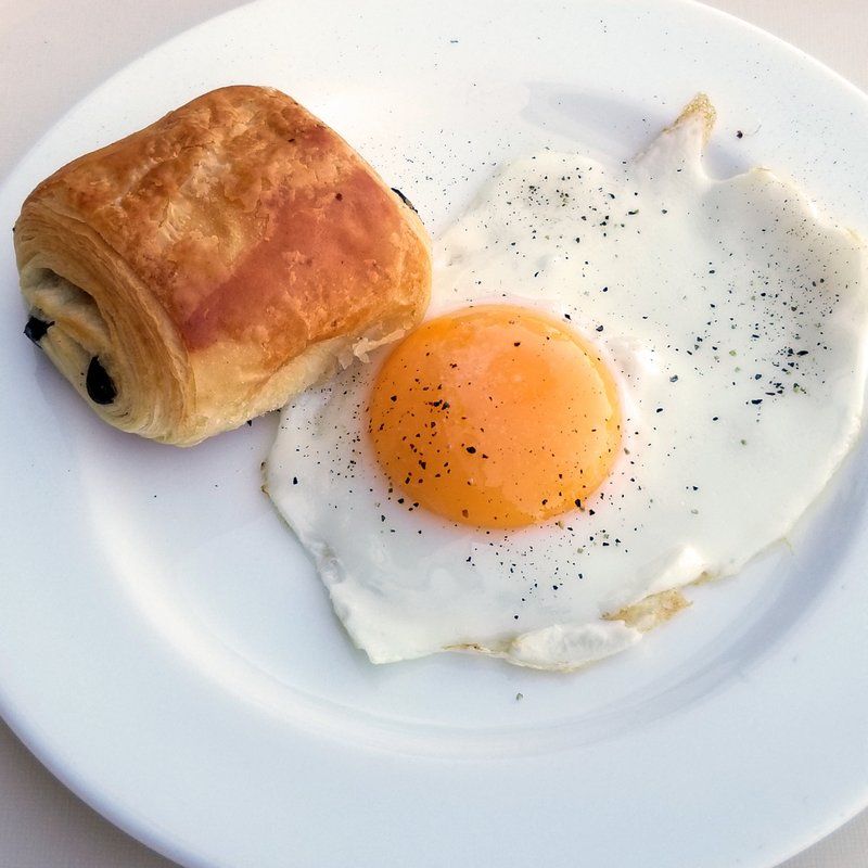 店内でもテラスでも、どちらでも好きな方で食事が出来る。迷うことなくテラスを選択。目の前には圧倒的な景色が広がってた。エメラルドグリーンの海・・・!! これを見ながらノンビリ食事&珈琲。思いっきり広い。快晴で最高。このレストランはこの景色が値打ちある。それとこのホテルで作ってる焼き立てパンが良かった♪