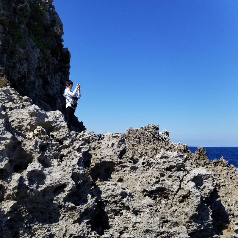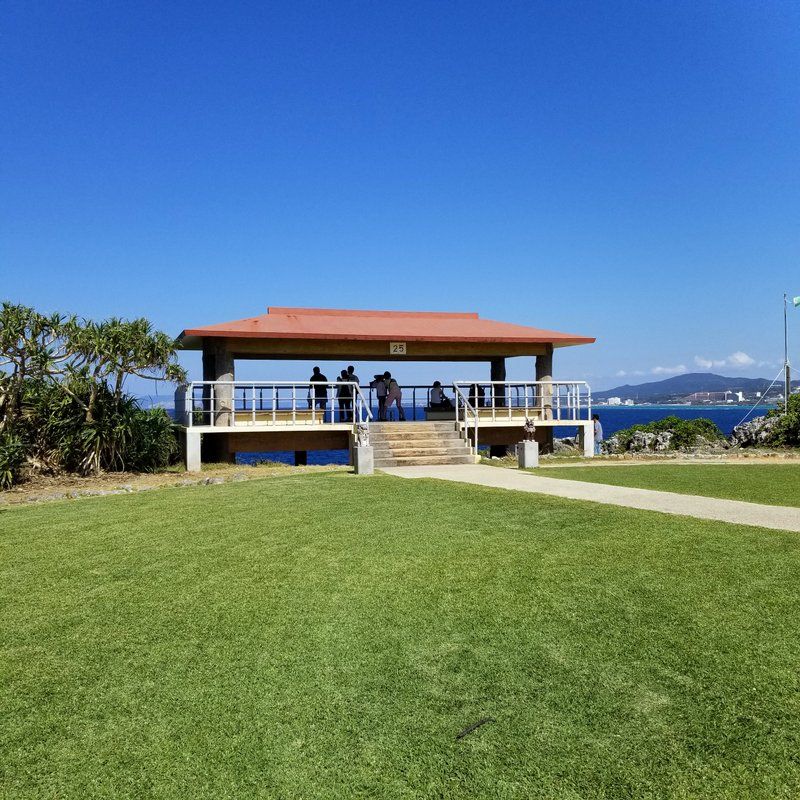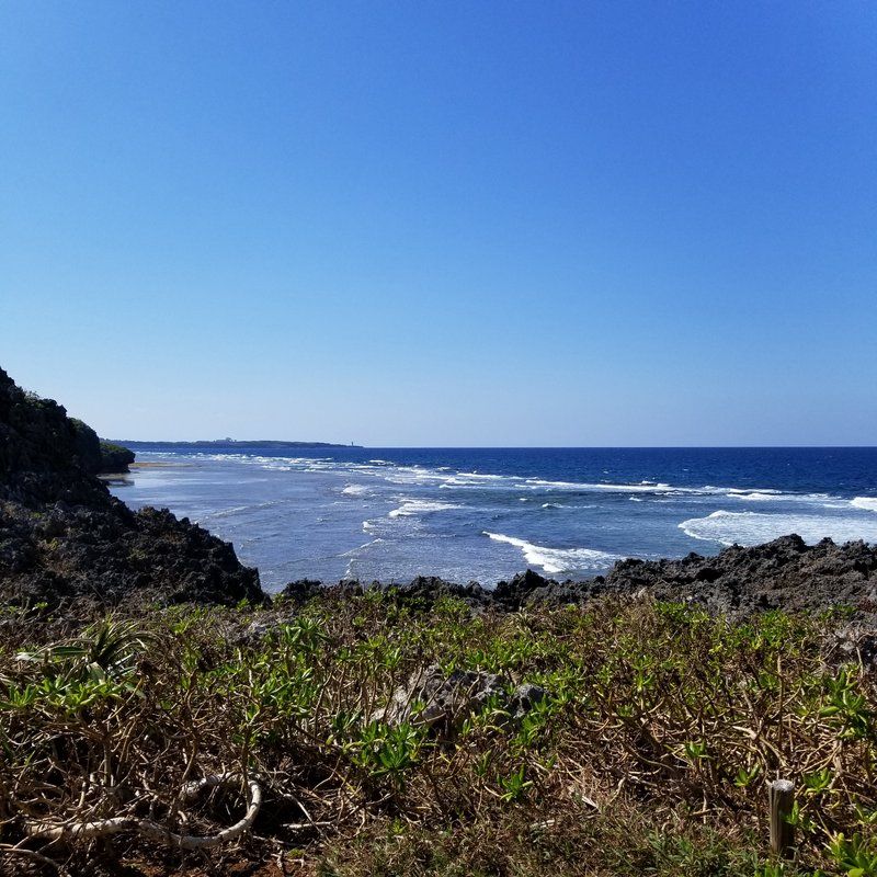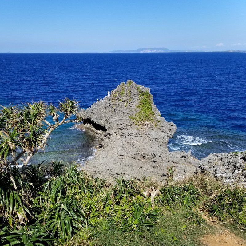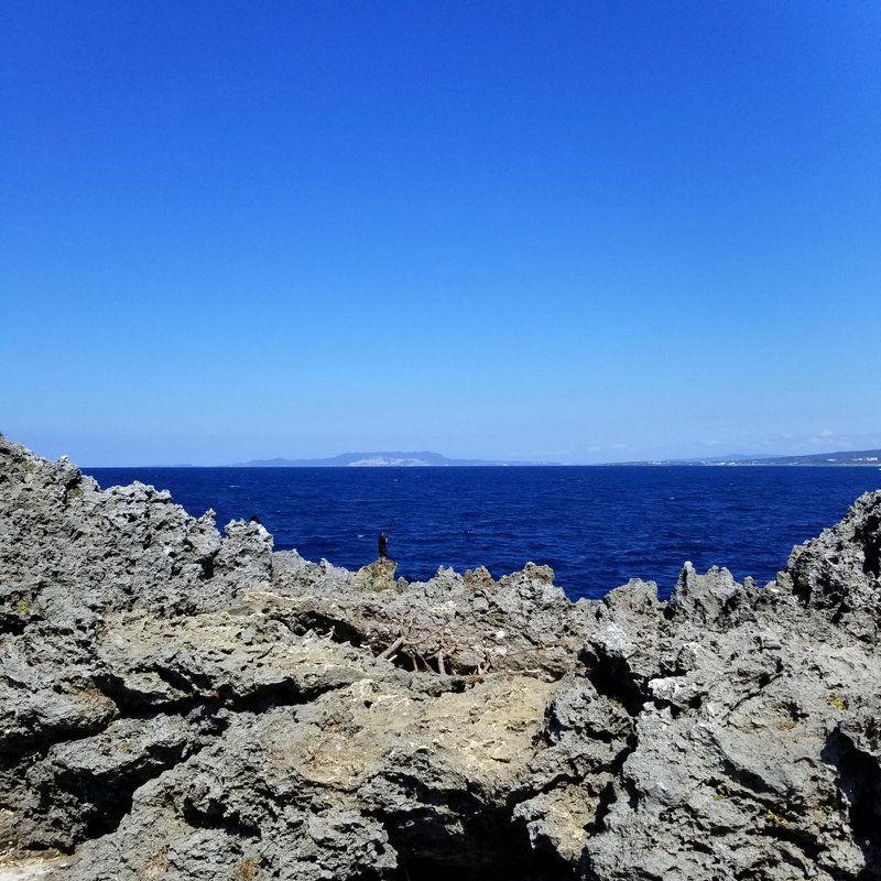 ククル読谷サーキットの帰り道、真栄田岬の案内があったんで、ちょっと寄ってみた。青の洞窟が有名なダイビングスポットやね。展望スペースもあった。思いっきり快晴♪