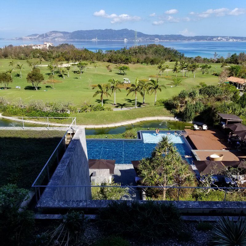 今日もメッチャいい天気♪ リッツカールトン沖縄2日目の朝。窓からの景色は絶景。いやあ、それにしても昨日は飲みすぎた(笑)。ほぼ記憶が無い。何か寝ぼけてカップ麺の沖縄そばに右手をつっこんで、それをこぼして、セガレが掃除してくれたような・・・???