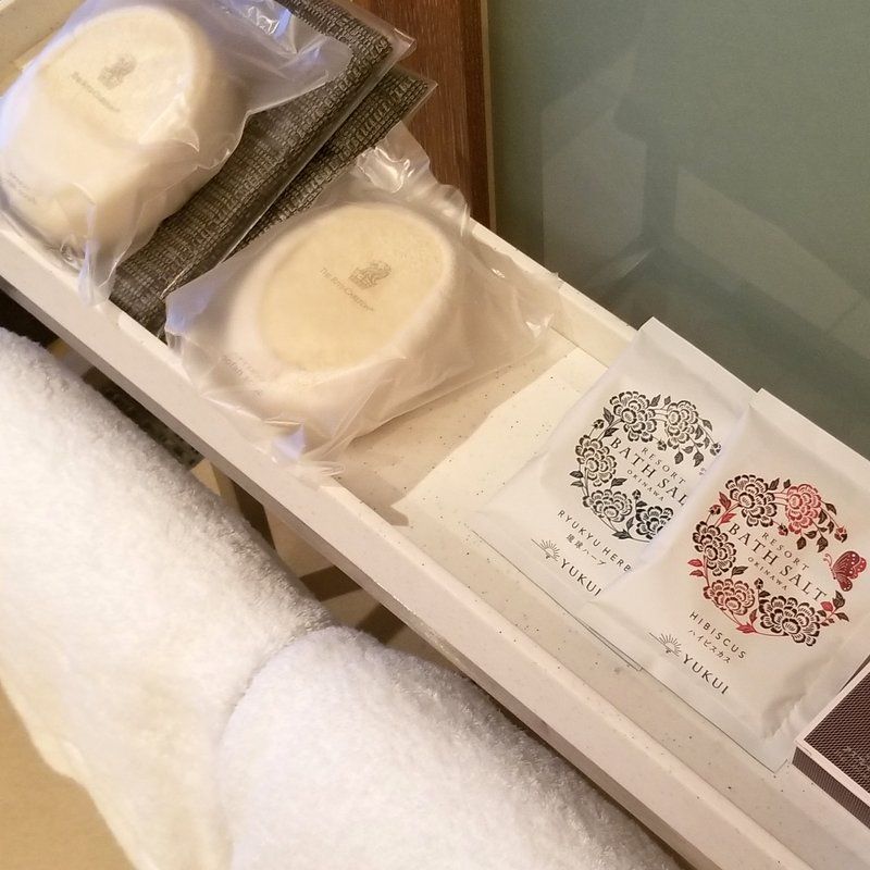 ちょうどターンダウンの時間で、ベッドの横にチョコレートのちんすこうを置いておいてくれた。このお菓子がまた珈琲と良く合うねんなあ。思いっきり快適なバスタイム。アメニティはアスプレイ。あまりにも贅沢な非日常体験。たまにはこういうのもいいと思う♪