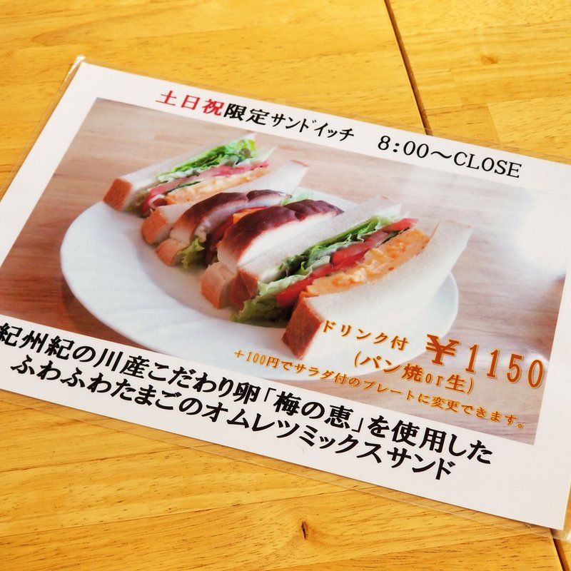 土日祝限定のサンドイッチがあった。紀州紀ノ川産こだわり卵「梅の恵」を使用したオムレツミックスサンド。玉子がギッシリつまったサンドイッチ。それにベーコンピザトーストとローストチキンのバインミー。バインミーっていうのはベトナムのサンドイッチ。どれもメッチャ良く出来てた。これにここのホットコーヒーが最高やね~♪